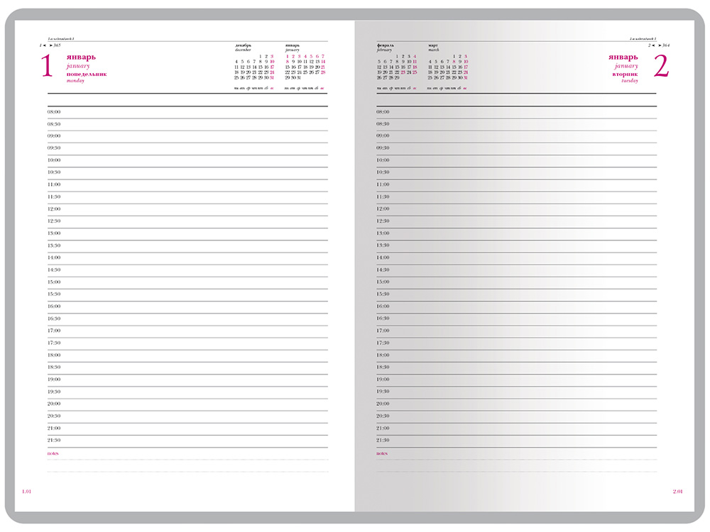 Ежедневник датированный на 2026 год. Его обложка со скруглёнными уголками и с отстрочкой по периметру в цвет выполнена из искусственной кожи нежной и приятной на ощупь.