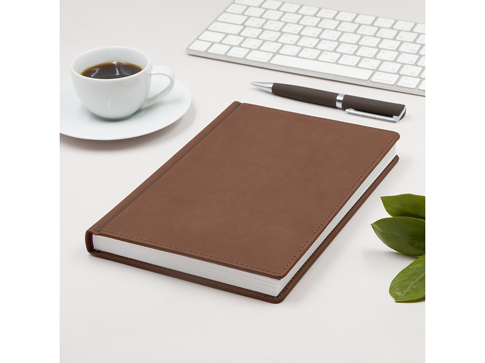 Ежедневник датированный на 2026 год. Его обложка со скруглёнными уголками и с отстрочкой по периметру в цвет выполнена из искусственной кожи нежной и приятной на ощупь.
