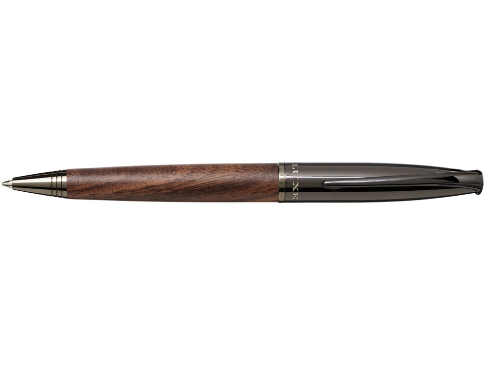 Шариковая ручка с поворотным механизмом и деревянным корпусом, изготовленная из латуни с хромированным покрытием, в подарочной коробке LUXE. -