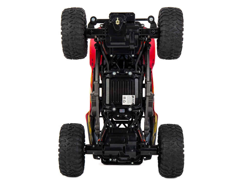 Огромные шины с агрессивным протектором позволяют ездить практически по любому покрытию, а влагозащищенный корпус позволяет запускать внедорожник даже в самую мокрую погоду. Продуманная конструкция обеспечивает плавность хода и быстрый разгон до максимальной скорости.