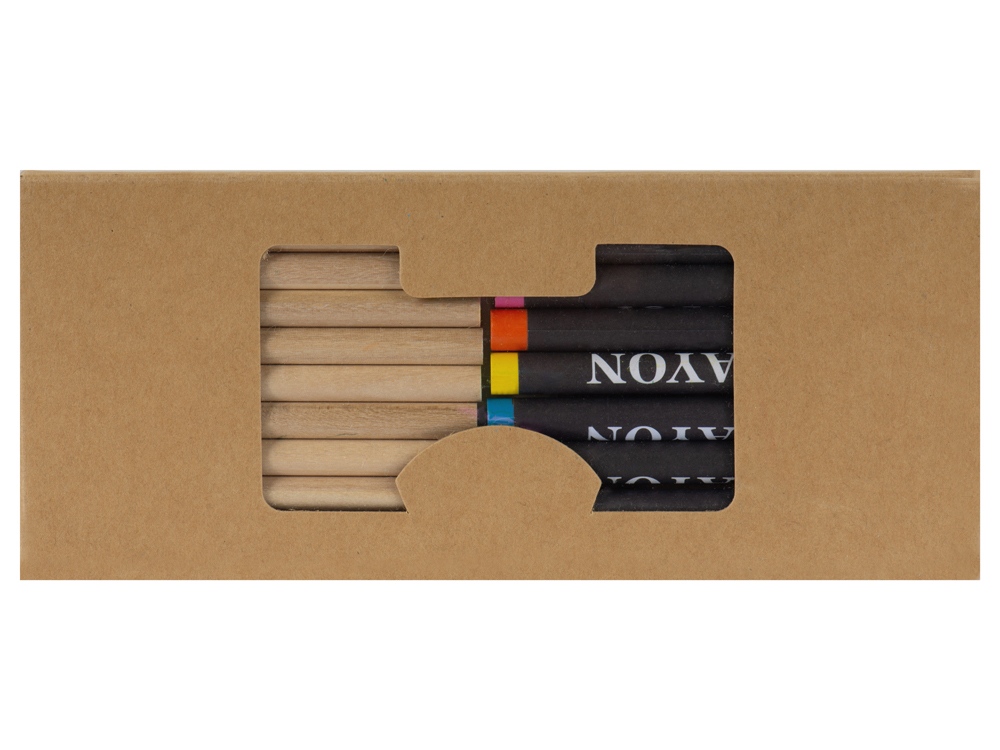 Набор из 19 карандашей. 9 цветных восковых карандашей и 10 цветных карандашей в картонной коробке с пластиковым окошком. -