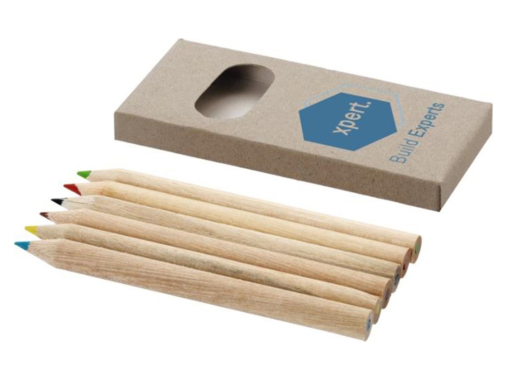 Набор включает в себя 6 цветных карандашей из натурального дерева. На картонную коробку и карандаши можно нанести логотип организации. -