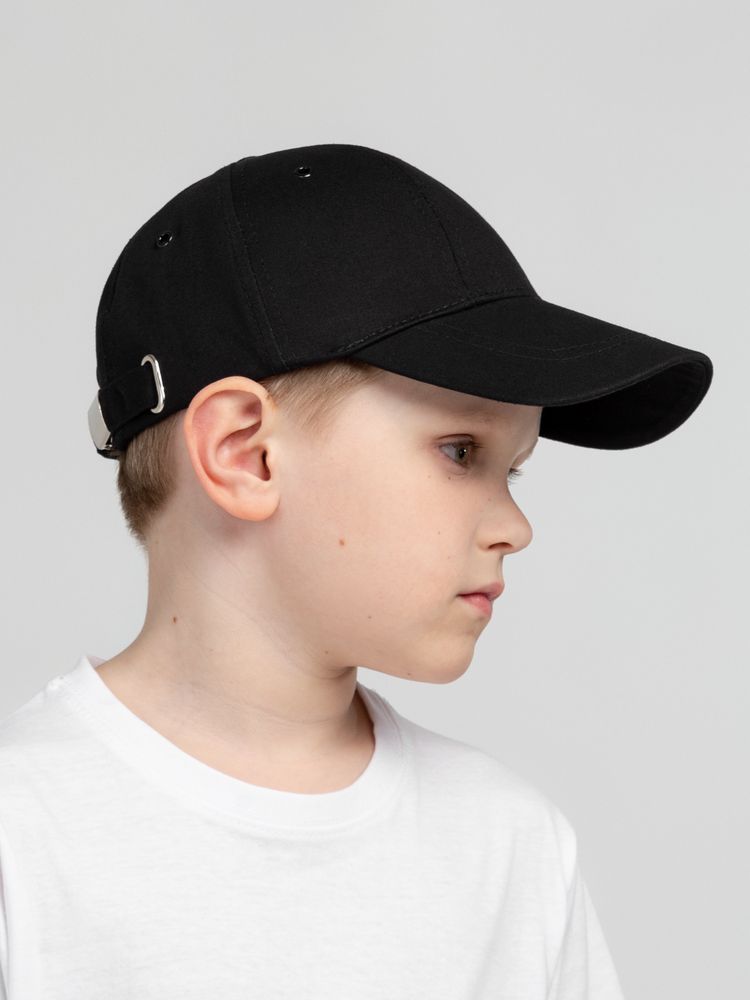 Детская модель с шестью клиньями без шва на лбу. Металлические люверсы покрашены в тон изделия. Сзади металлическая застежка для регулировки размера. -