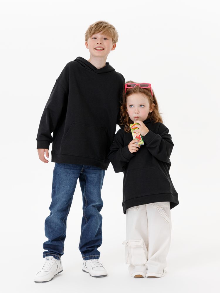Детское худи оверсайз со спущенным плечом и карманом-кенгуру.- Прекрасно подходит для всевозможных видов нанесения благодаря использованию особо гладкой гребенной пряжи
