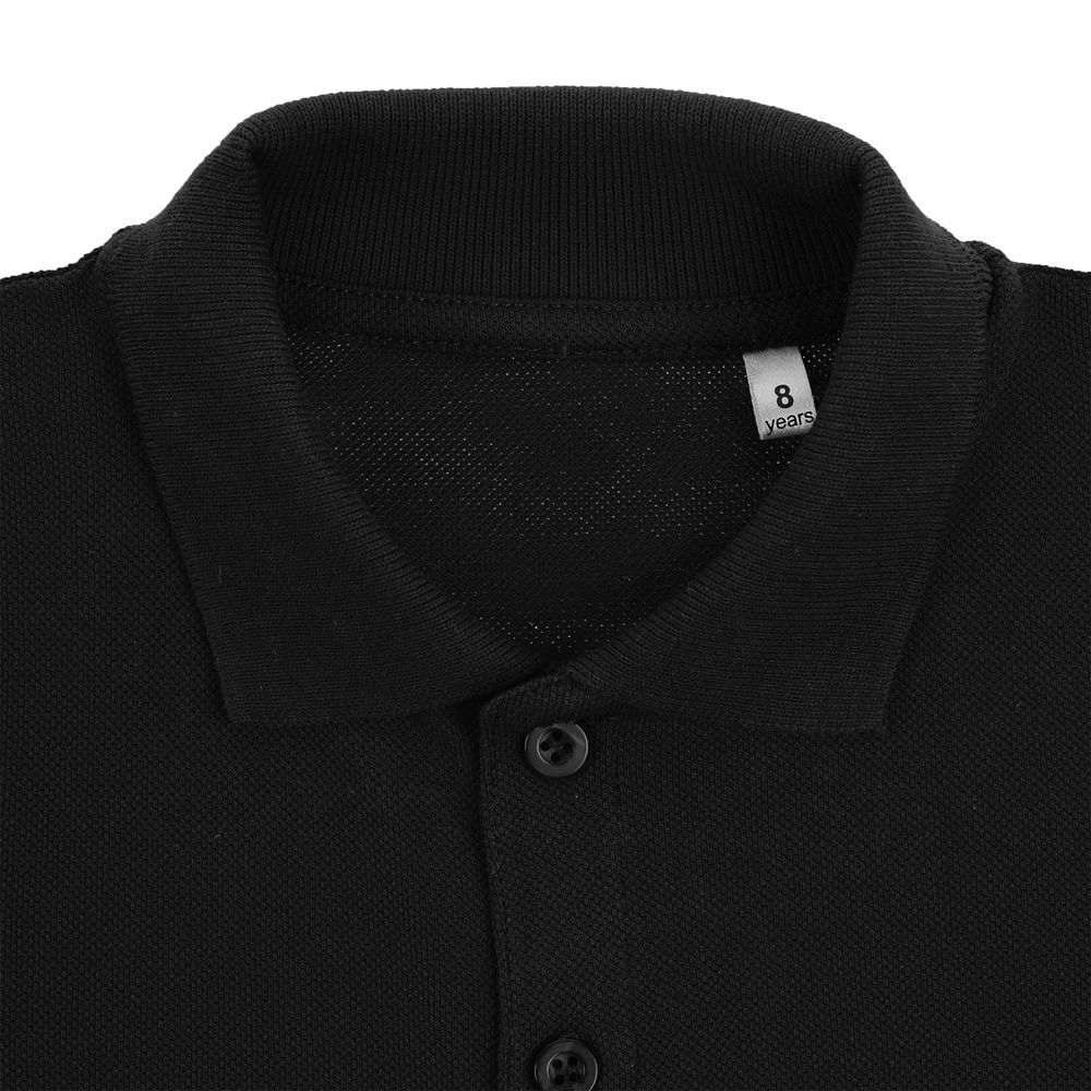 Классическая детская рубашка поло. Полотно активного крашения с дополнительной термоусадкой — изделие сохраняет цвет и форму надолго.- Две перламутровые пуговицы в тон