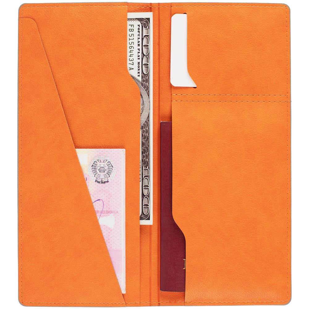 Имеет 5 отделений: для билетов, паспорта, визиток или кредитных карт. -