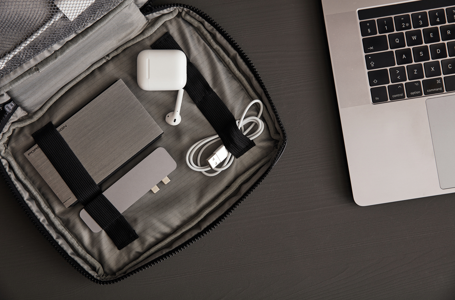Больше не придется искать наушники или зарядное устройство в сумке или рюкзаке! Все самое необходимое с легкостью поместится в органайзер из серии Baltimore. В нем найдется место блокнотам, ручкам, внешнему аккумулятору и кабелю для зарядки. Поддерживать порядок внутри легко: органайзер оснащен карманом и фиксирующими ремешками. Он изготовлен из полиуретана с нанесением soft-touch. Снаружи расположен аккуратный небольшой карабин, с помощью которого органайзер можно пристегнуть к рюкзаку или сумке.