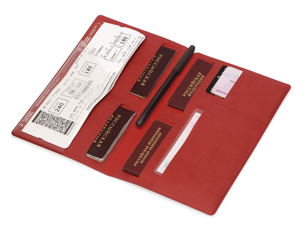 Внутри имеется восемь карманов, которые позволяют вместить документы для семьи из четырех человек. Документы аккуратно разложены и не утратят свою форму. Благодаря своим преимуществам органайзер для путешествий становится не только отменным подарком, но и эффективным рекламным средством. -