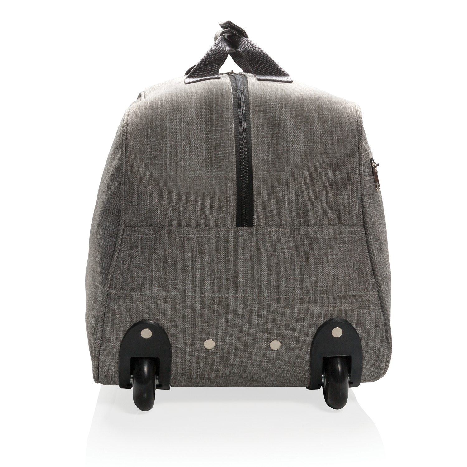 Дорожная сумка Basic изготовлена из прочного меланжевого полиэстера плотностью 600D. В ней предусмотрены удобные колесики и выдвижная ручка, основное вместительное отделение и большой карман на молнии.