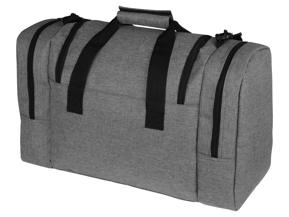 Удобная и прочная сумка для путешествий или походов в спортзал. Два вместительных больших кармана на молниях по бокам и один спереди. Сумка сделана из плотной долговечной ткани. Ремень на плечо отстегивается и регулируется по длине.