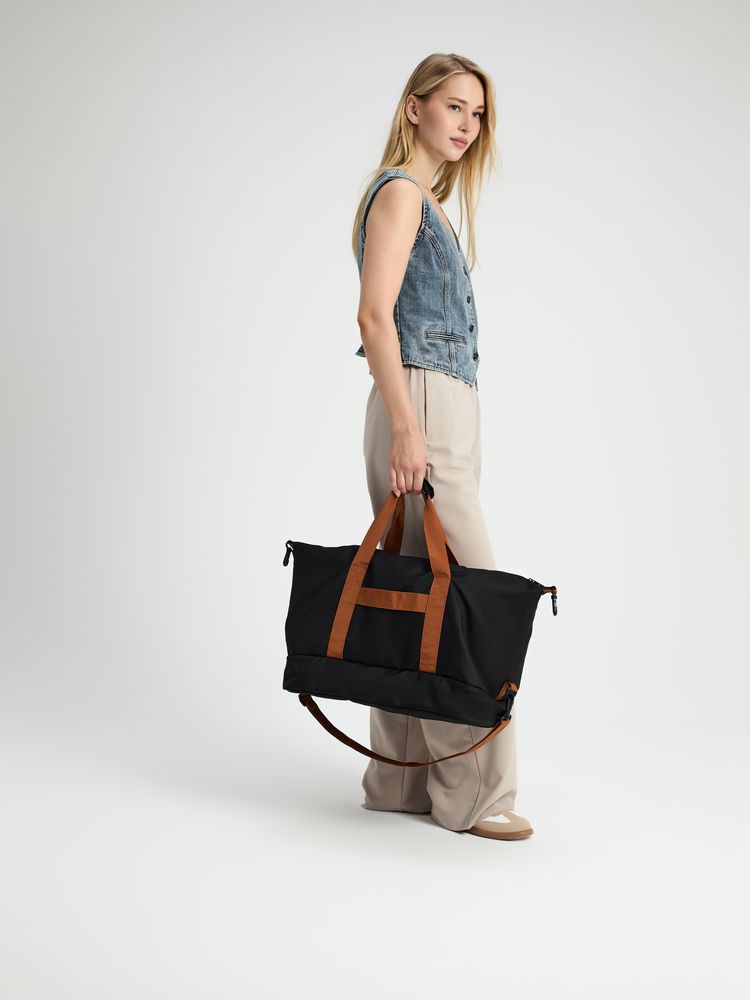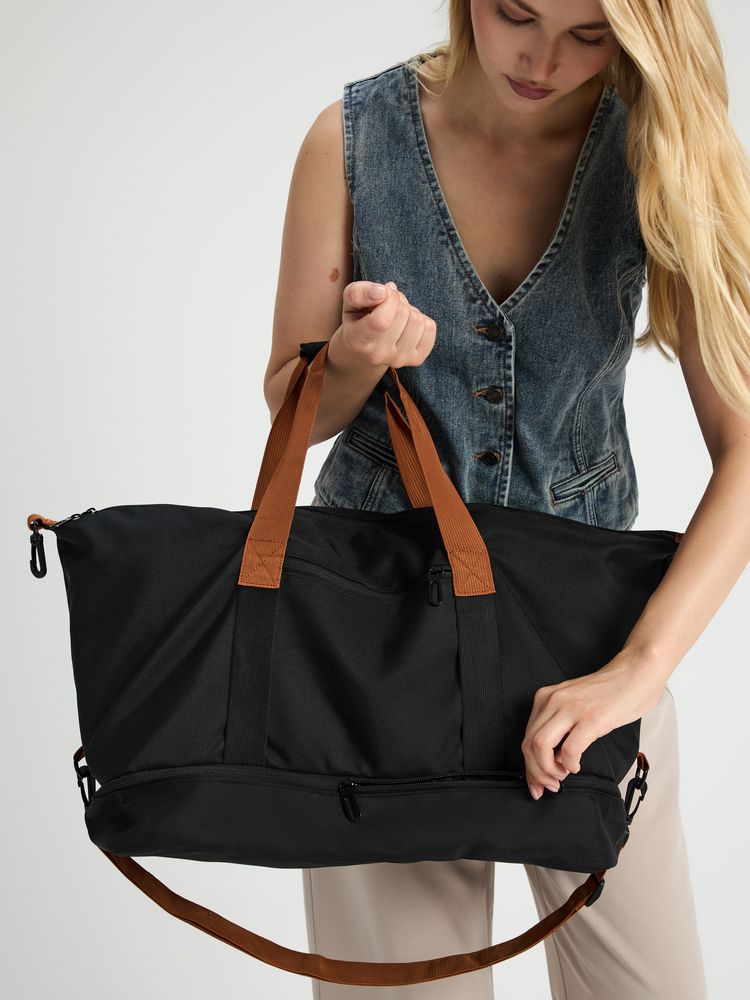 Дорожная сумка Incluso — надежный спутник в краткосрочной поездке, будь то командировка или выезд на уикенд. Также она с легкостью станет незаменима для спортзала. Изготовлена из прочного материала, оснащена удобными ручками и регулируемым плечевым ремнем, что обеспечивает комфорт при переноске. В сумке предусмотрено специальное отделение для обуви.- Объем 35 л