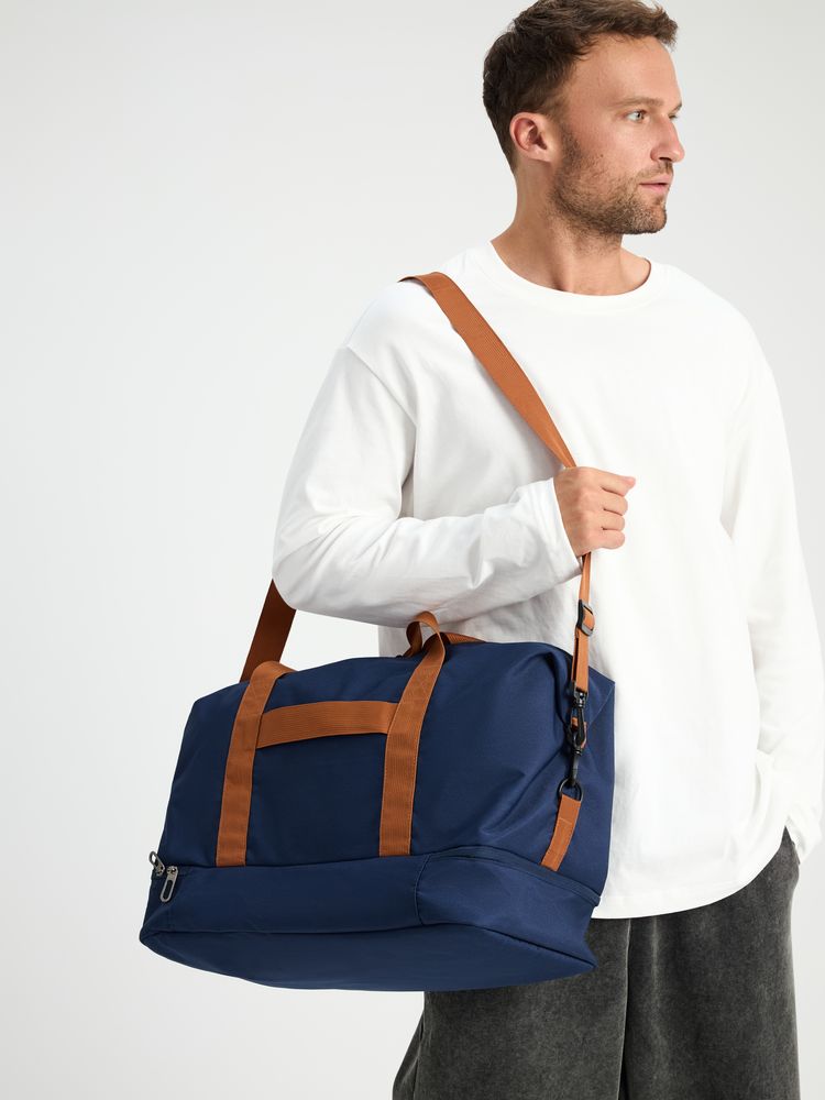 Дорожная сумка Incluso — надежный спутник в краткосрочной поездке, будь то командировка или выезд на уикенд. Также она с легкостью станет незаменима для спортзала. Изготовлена из прочного материала, оснащена удобными ручками и регулируемым плечевым ремнем, что обеспечивает комфорт при переноске. В сумке предусмотрено специальное отделение для обуви.- Объем 35 л