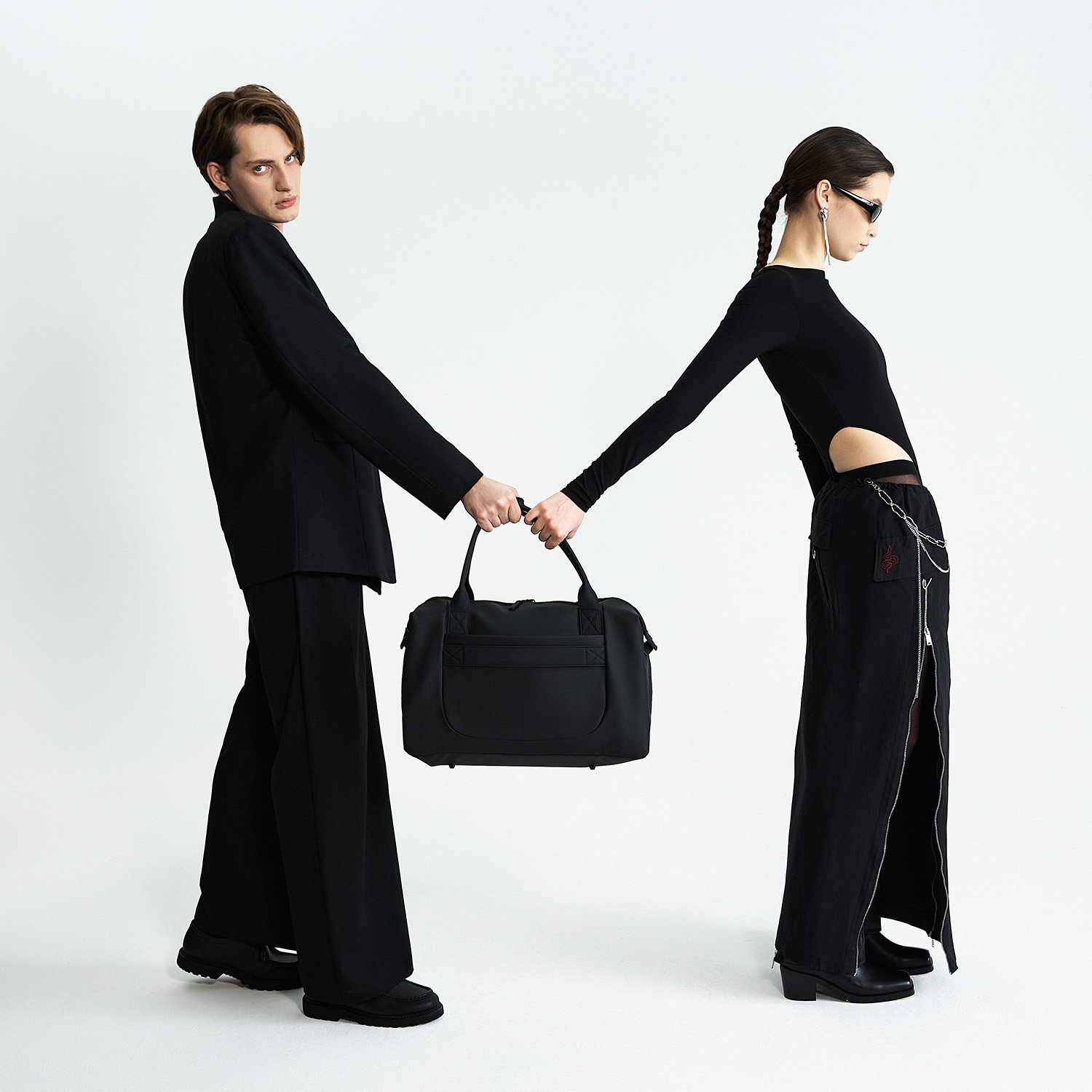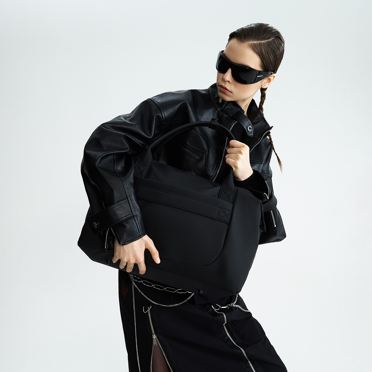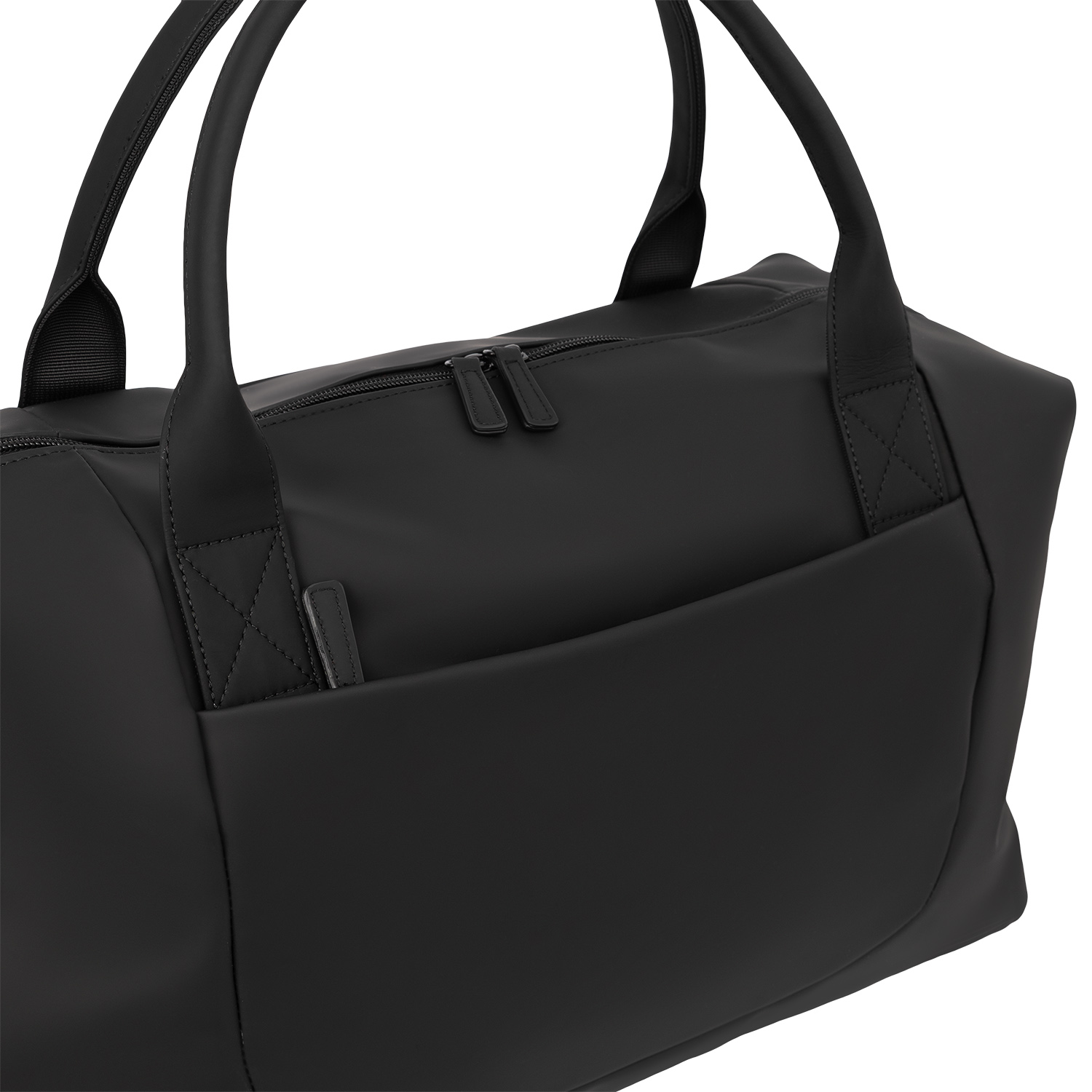 Материал отталкивает влагу, устойчив к царапинам и долго сохраняет аккуратный вид. Магнитные боковые фиксаторы подчеркивают чистоту линий. Внутри — карман на молнии и два отделения, снаружи — скрытые боковые карманы.