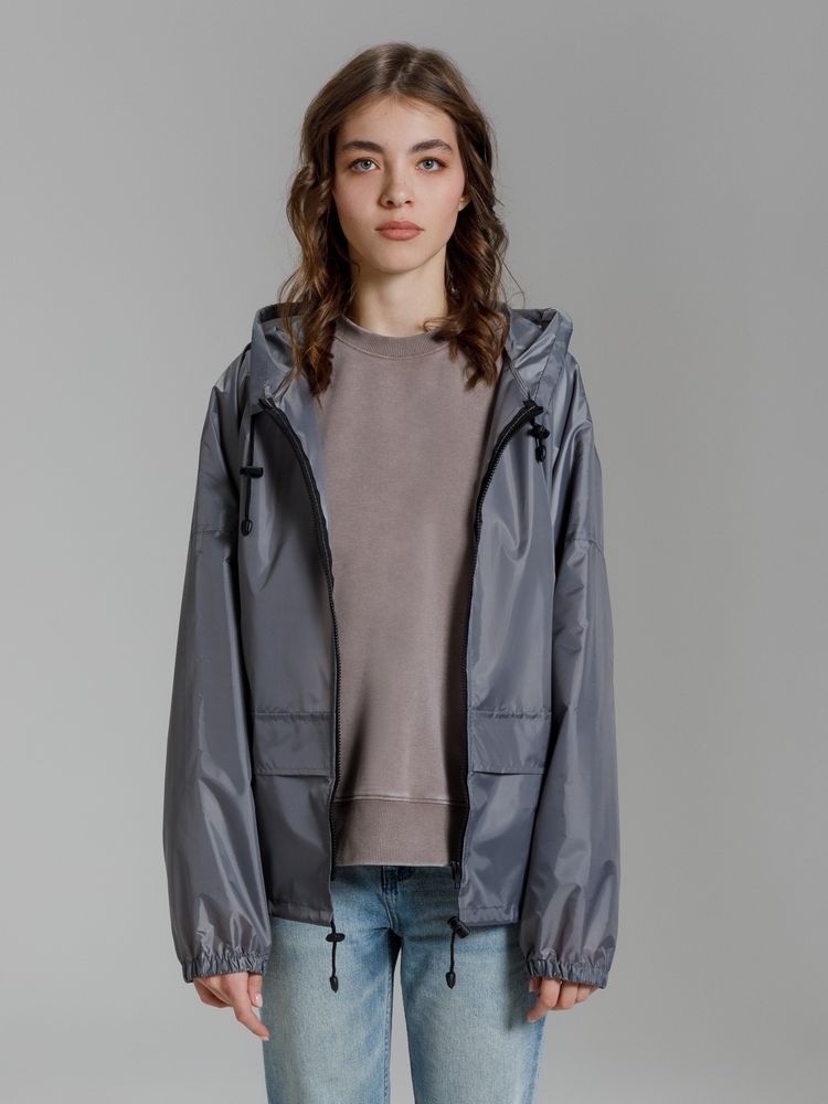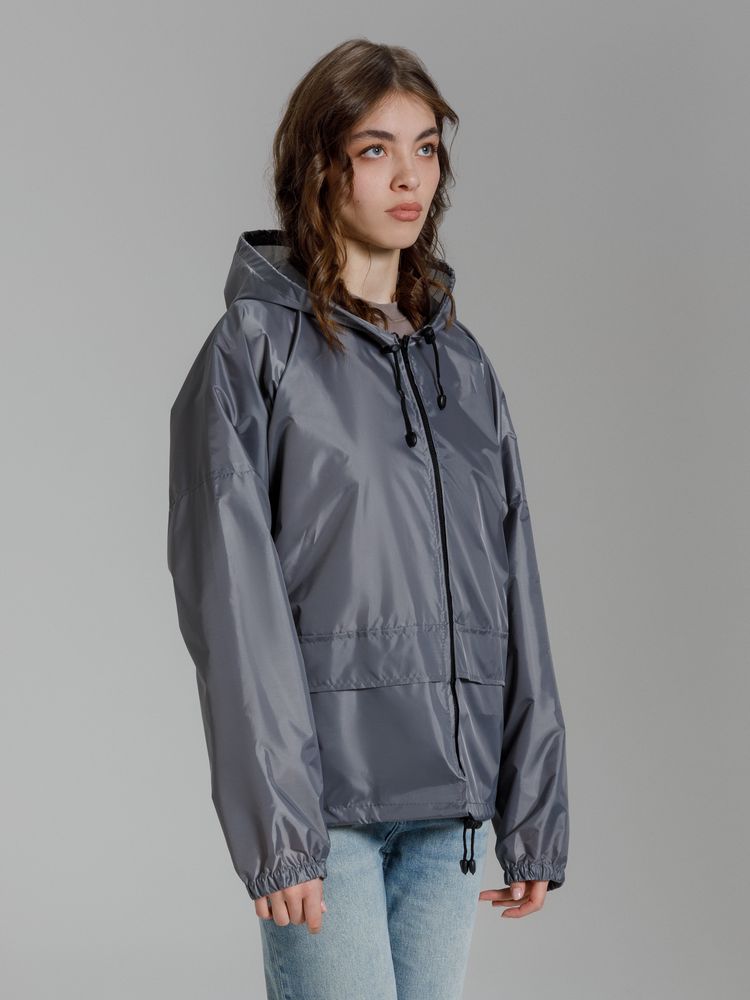 Укороченный дождевик свободного кроя из ткани таффета с влагозащитным покрытием. Складывается в мешочек — удобно брать с собой.- Два накладных кармана надежно закрыты клапанами и защищены от дождя
