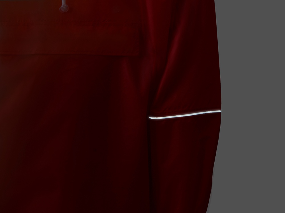 Швы капюшона и рукавов отделаны светоотражающим кантом, который делает человека заметным даже в темное время суток. Для комфортной посадки — затягивающийся на шнурок капюшон с фиксатором и манжеты на резинке.