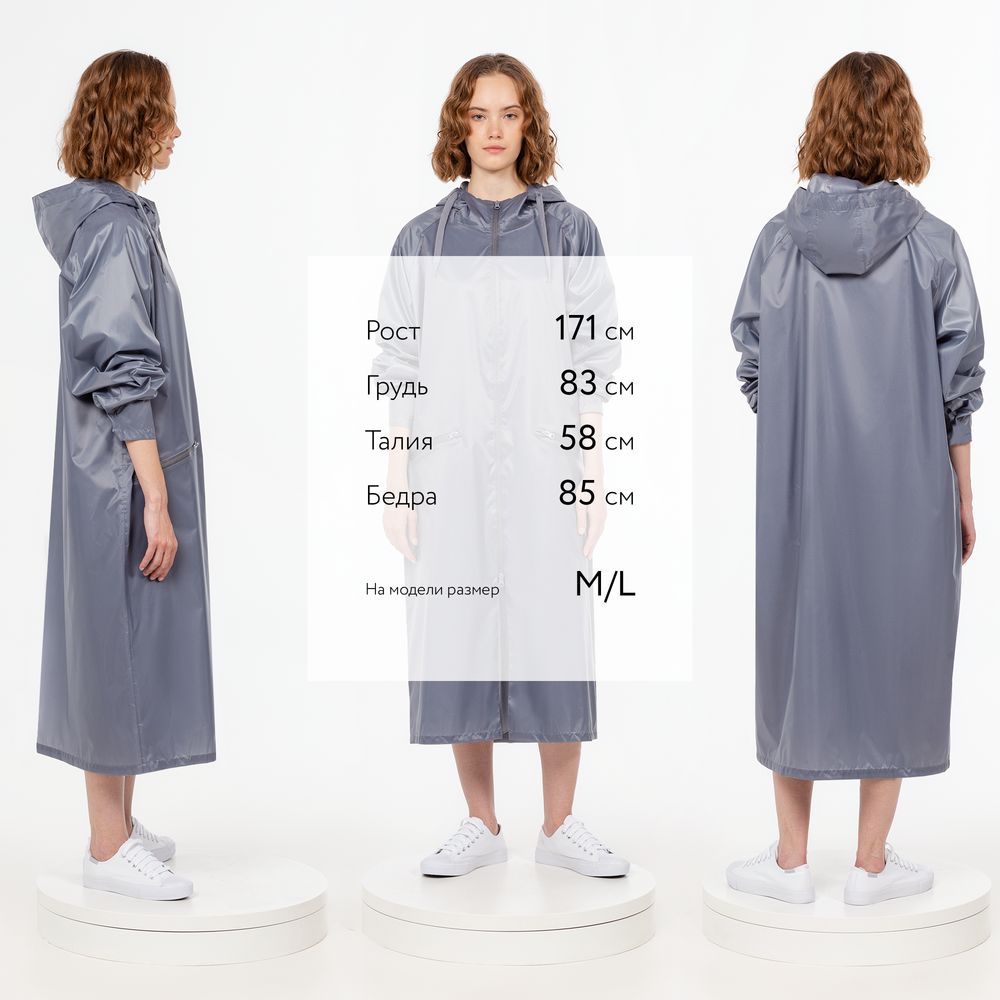 Плащ-дождевик на молнии с капюшоном из ткани таффета с полиуретановой пропиткой для защиты от сильного дождя.- Проклеенные швы по всем деталям кроя