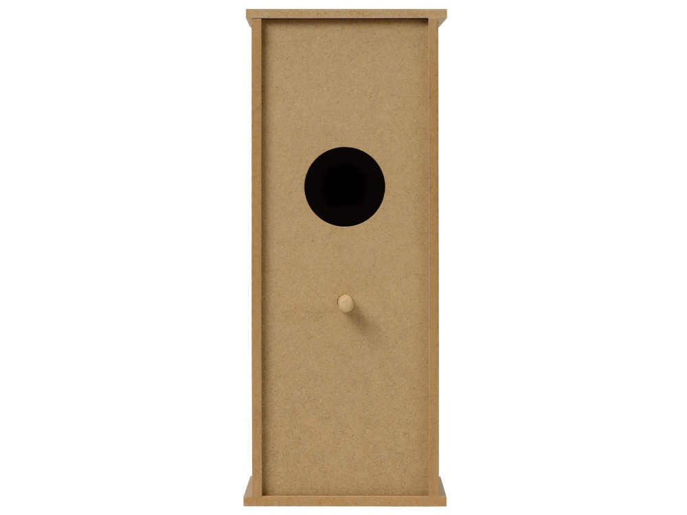 Сборный скворечник из МДФ поставляется в виде отдельных деталей в крафтовой упаковке. Собрать домик для птиц очень просто: понятная инструкция объяснит, как соединять детали, а приложенные винтики и жердочка-колышек помогут их скрепить.
