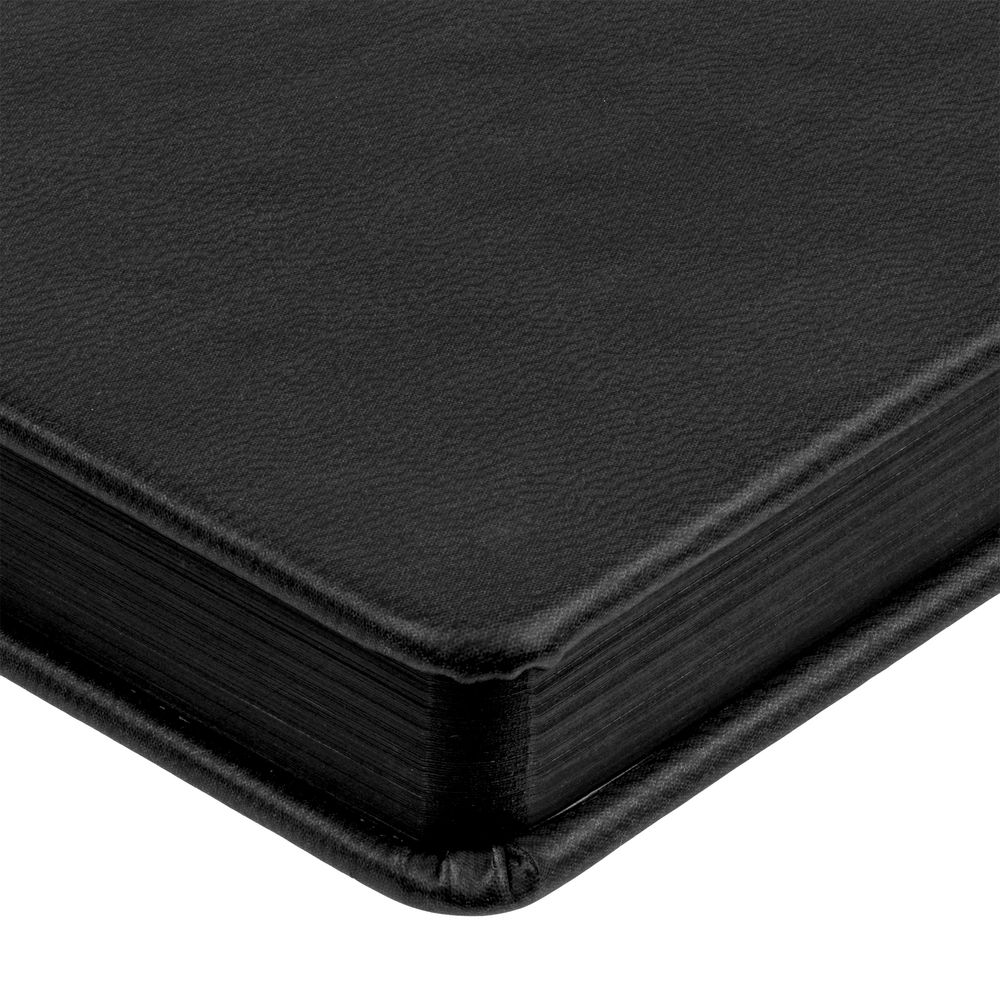Ежедневник с твердой обложкой и тонированным обрезом. Выполнен из материала Latte, черный, дополнен ляссе в цвет обложки.