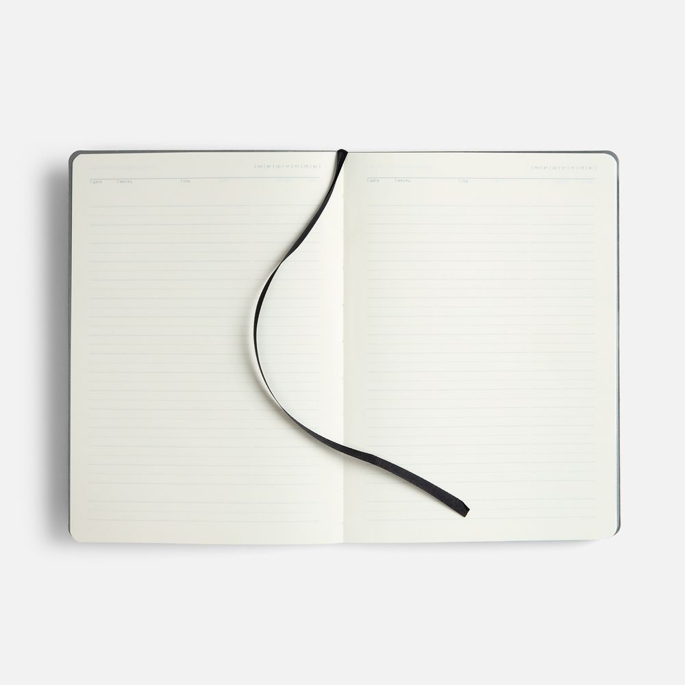 Ежедневник с гибкой обложкой, выполнен из материала Cowhide, дополнен ляссе в цвет обложки.