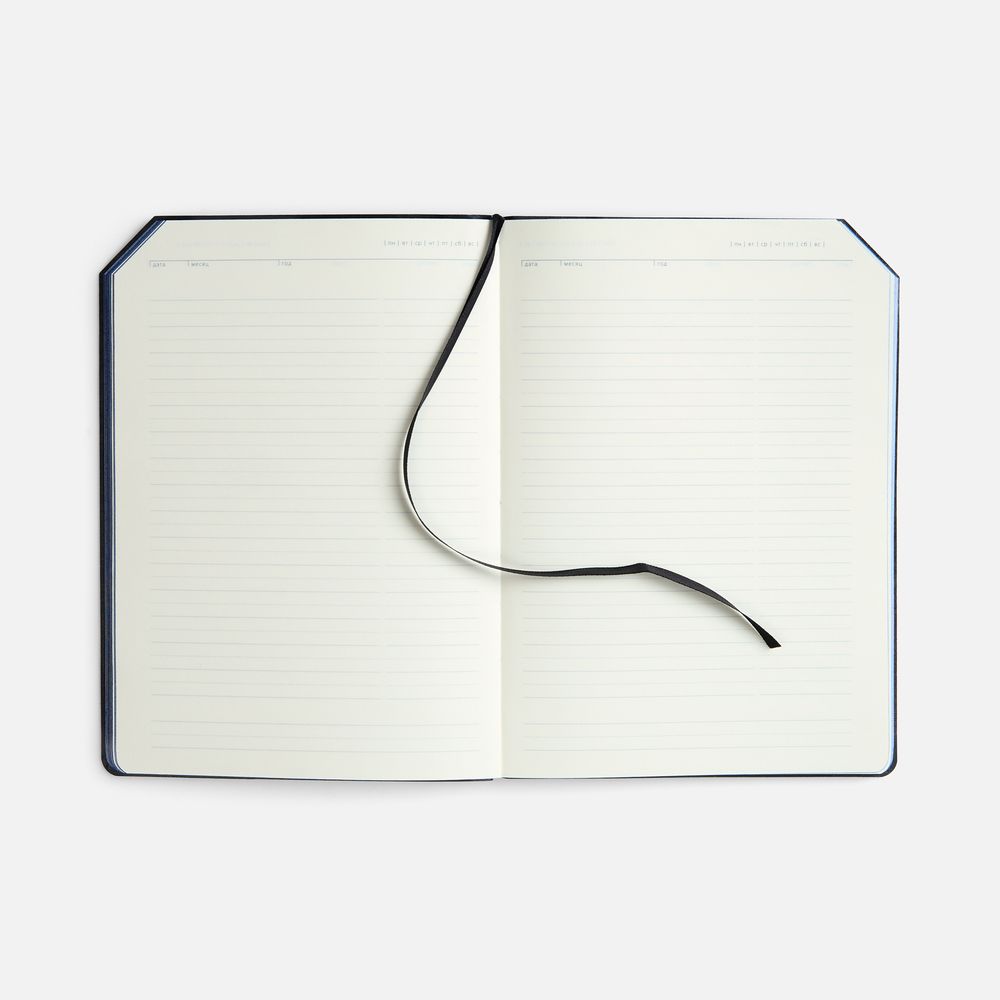 Ежедневник с гибкой обложкой, выполнен из материала Espresso, дополнен ляссе черного цвета и хлястиком на кнопке.