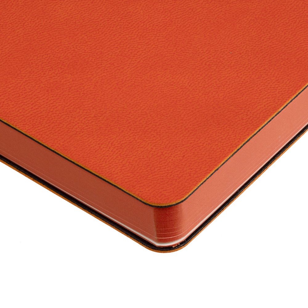 Ежедневник с гибкой обложкой, выполнен из материала Latte, оранжевый, дополнен ляссе в цвет обложки.