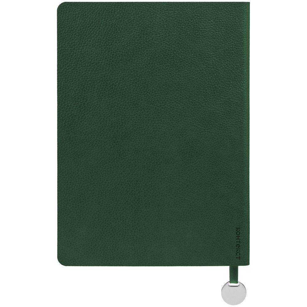 Ежедневник с гибкой обложкой, выполнен из материала La Fite, зеленый, дополнен ляссе в цвет обложки с металлическим шильдом.Блок 985, без календарной сетки и информационного блока: