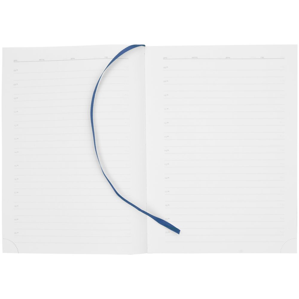 Ежедневник в гибкой обложке выполнен из материала Latte, темно-синий.