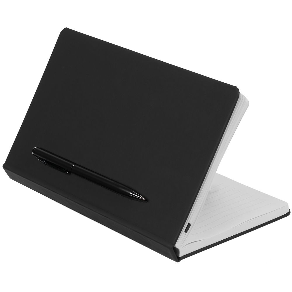 Ежедневник в твердой обложке, выполненной из материала Soft Touch Pearl, черный АА, дополнен цветным ляссе и магнитом, удерживающим ручку.