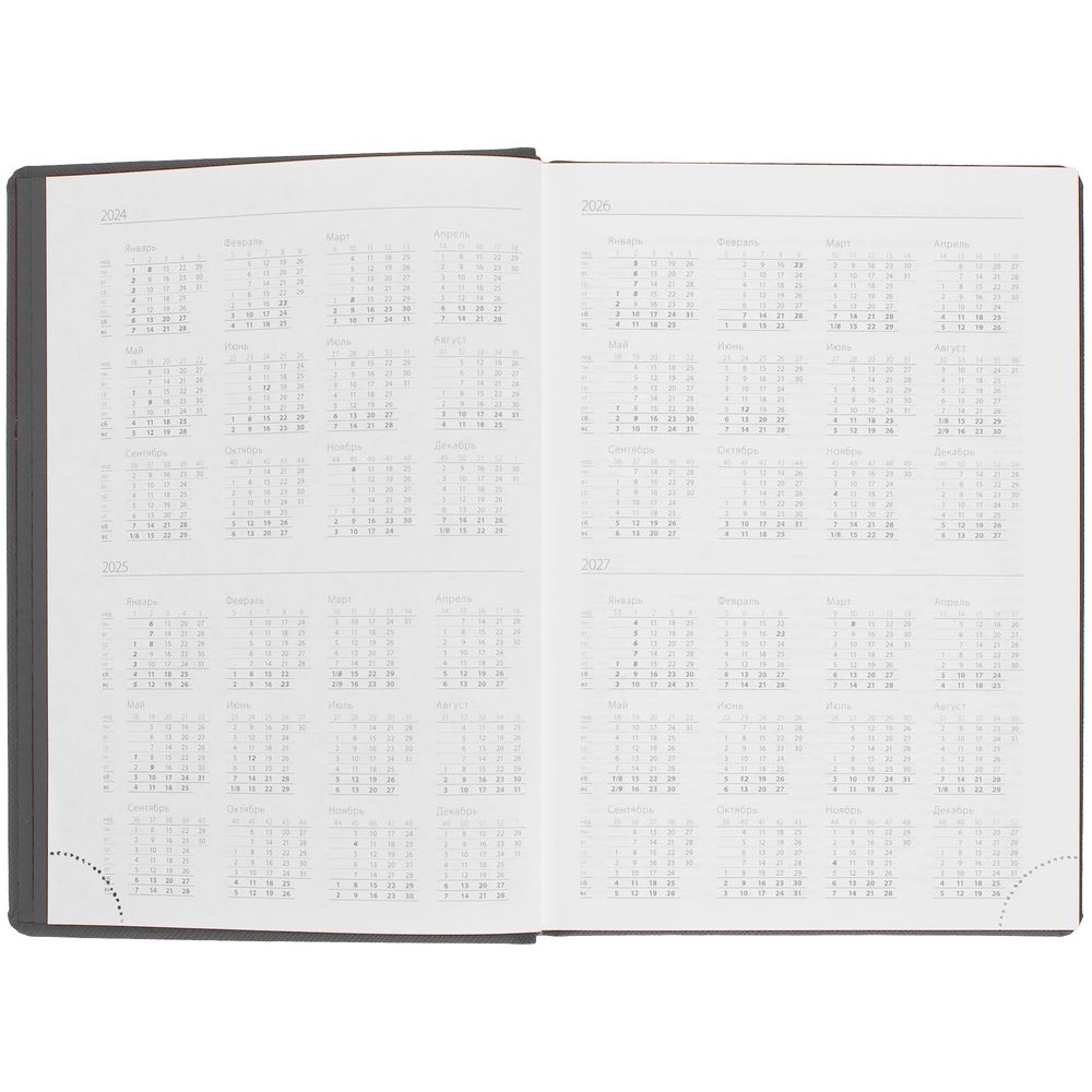 Ежедневник с карманом шириной 10 см из резинки, в котором удобно разместить мобильный телефон или визитки для переговоров.