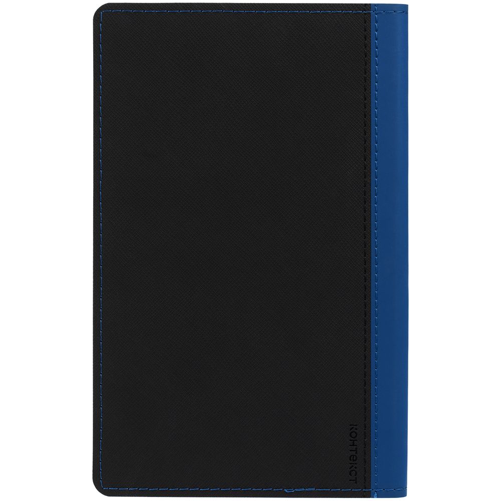Стильный двухцветный ежедневник с гибкой обложкой и цветным обрезом.Ежедневник с гибкой обложкой выполнен из материала Nice Touch, черный АА и Soft Touch Ultra, синий НН, дополнен ляссе гсинего цвета.