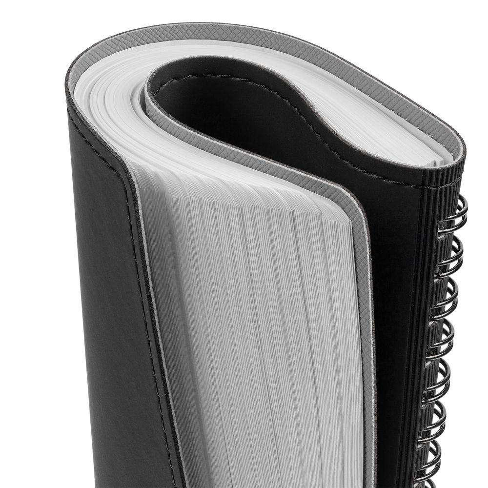 Ежедневник с гибкой обложкой, выполнен из материалов Soft Touch, черный АА и Nice touch,серый СС.