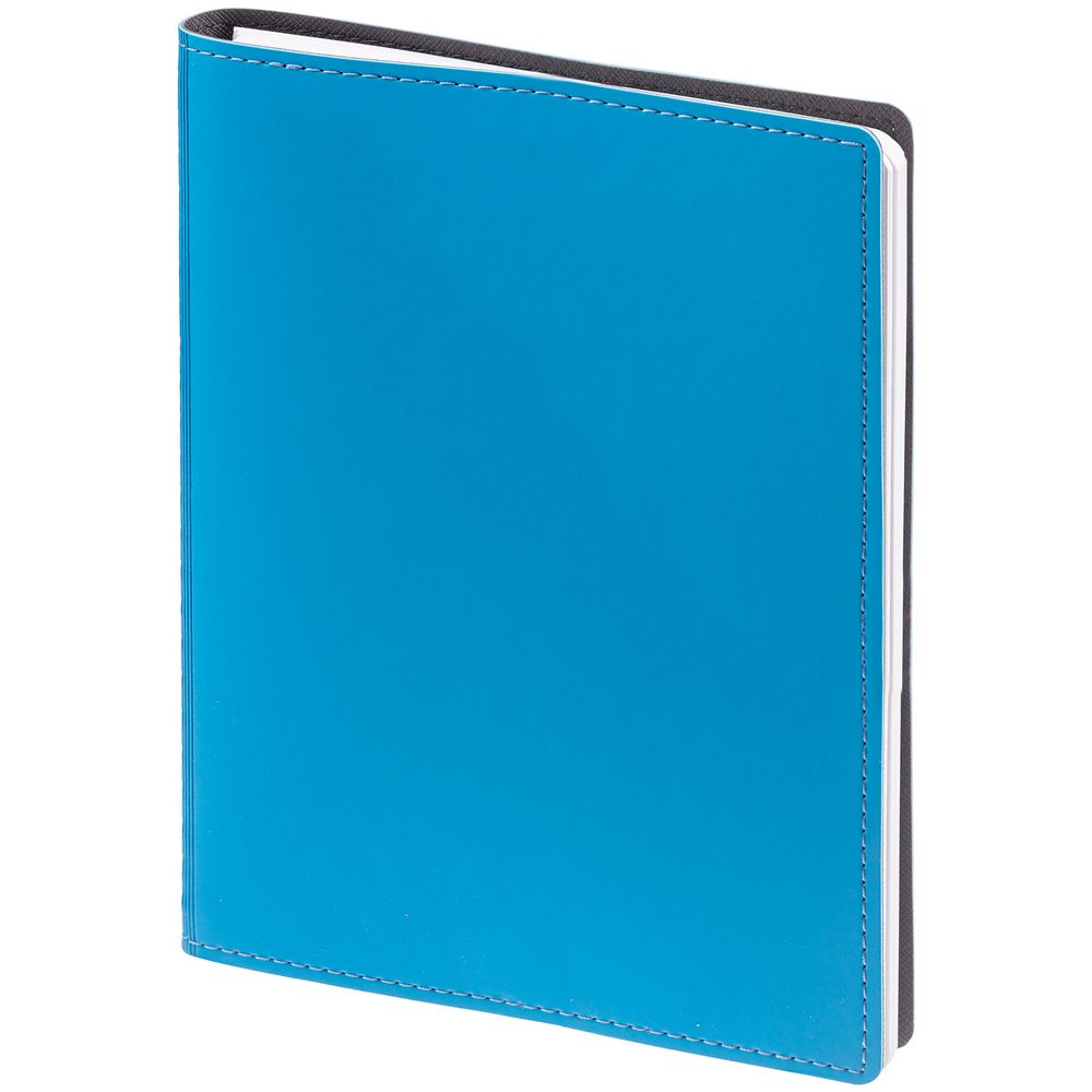 Ежедневник с гибкой обложкой, выполнен из материалов Soft Touch Ultra, голубой JJ и Nice touch, черный АА.