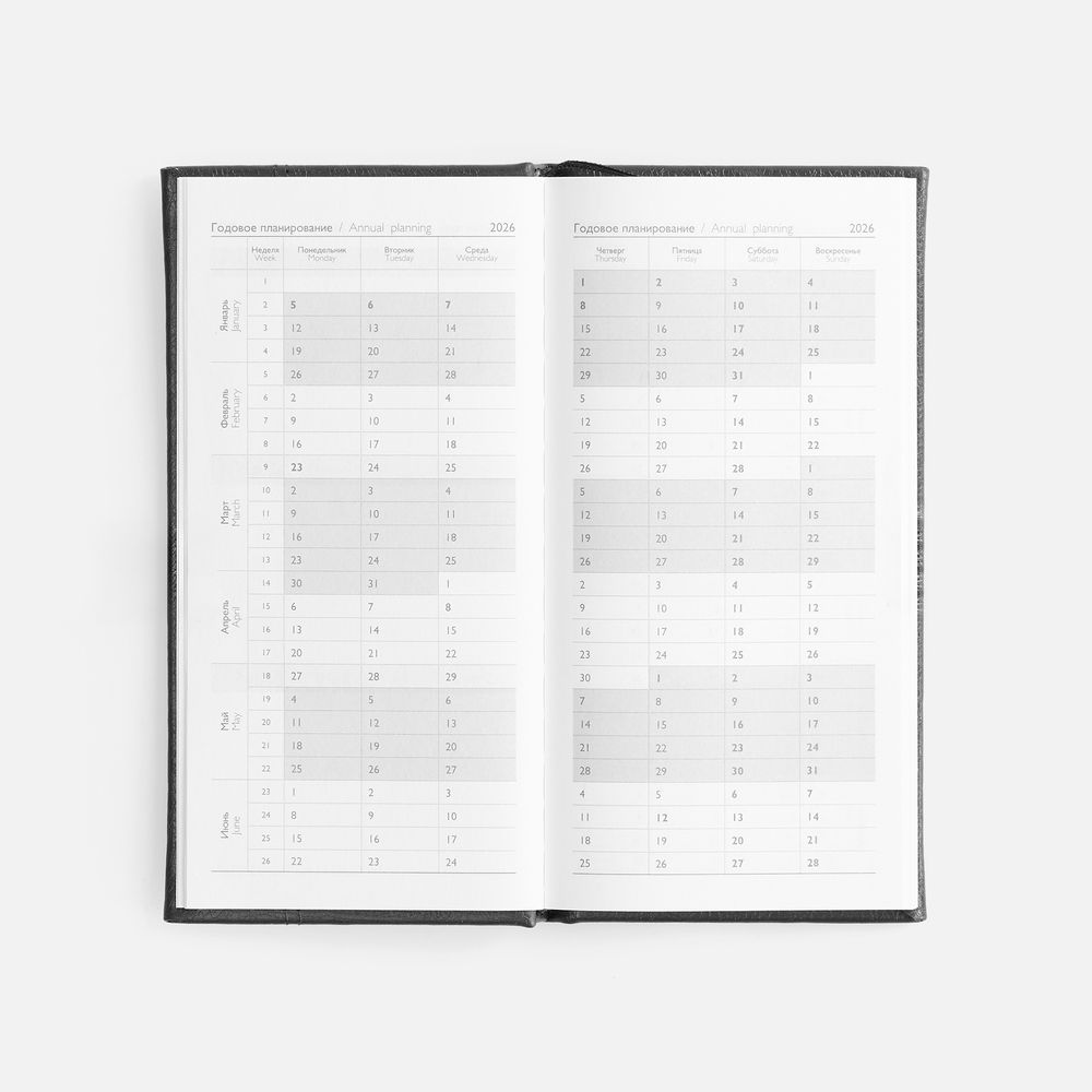 Еженедельник с твердой обложкой с поролоном из искусственной кожи, дополнен декоративной строчкой, капталом и ляссе в цвет.