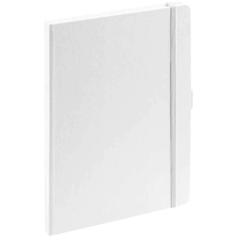 Еженедельник в твердой обложке выполнен из материала Nebraska, белый ВВ, дополнен резинкой, петлей для ручки и ляссе белого цвета.