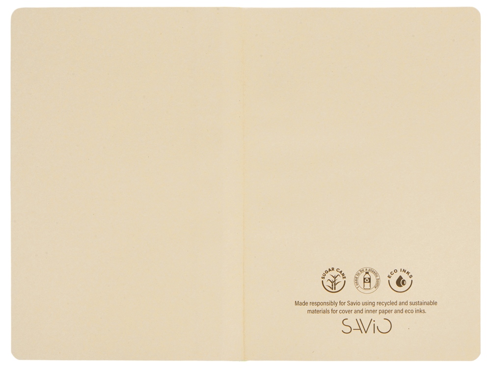 Блокнот, созданный для тех, кто заботится об экологии. Блок и обложка выполнены из переработанного сахарного тростника, а цветной корешок, который может хорошо сочетаться с логотипом, - из переработанного пластика.