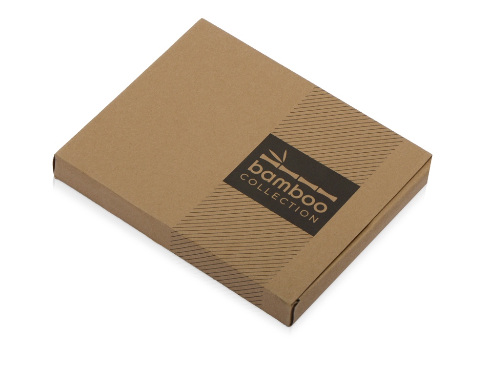 Набор с блокнотом и ручкой изготовлен из экологически чистых натуральных материалов. Обложка блокнота и корпус ручки из натурального бамбука, листы из переработанной бумаги. -