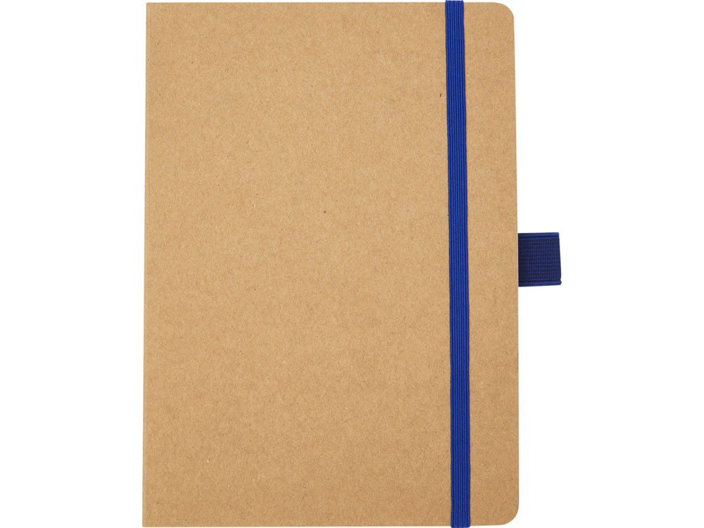 Блокнот формата из линованной переработанной бумаги (70 г/м²) с закругленными углами, цветной резинкой и петлей для ручки, соответствующей 107384 цветам ручки.