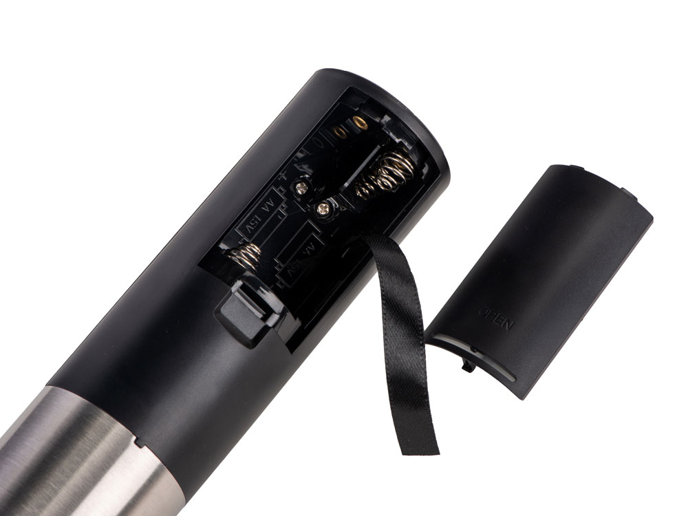 Кнопки спуска и поднятия штопора визуально выглядят как одна большая кнопка, при нажатии на нижнюю часть которой спираль вкручивается в пробку по часовой стрелке, а при нажатии на верхнюю — освобождает пробку, вращаясь в противоположном направлении. От пользователя требуется лишь правильно расположить штопор на пробке и нажать на кнопку.