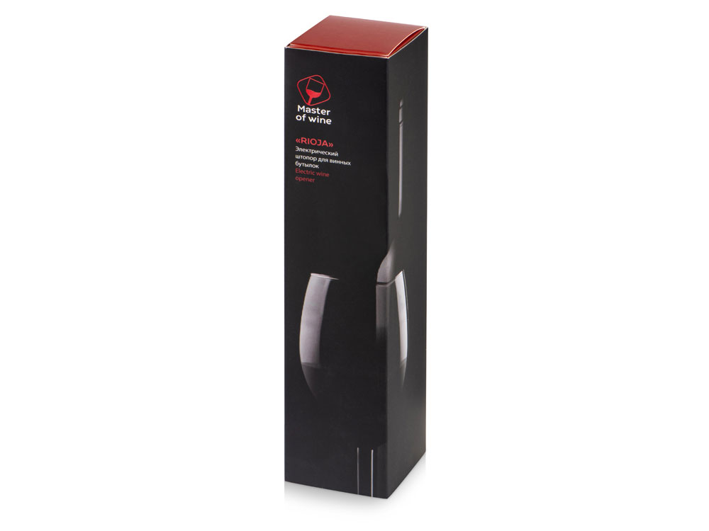Электрический штопор RIOJA бренда Master of Wine — прекрасный подарок любителю вина: эта модель поставляется в элегантной упаковке в комплекте с подставкой, которая также может выступать в роли ножа для фольги. Благодаря устойчивой и функциональной подставке штопор всегда будет под рукой, а внешний вид Rioja станет настоящим украшением барной стойки или кухни.