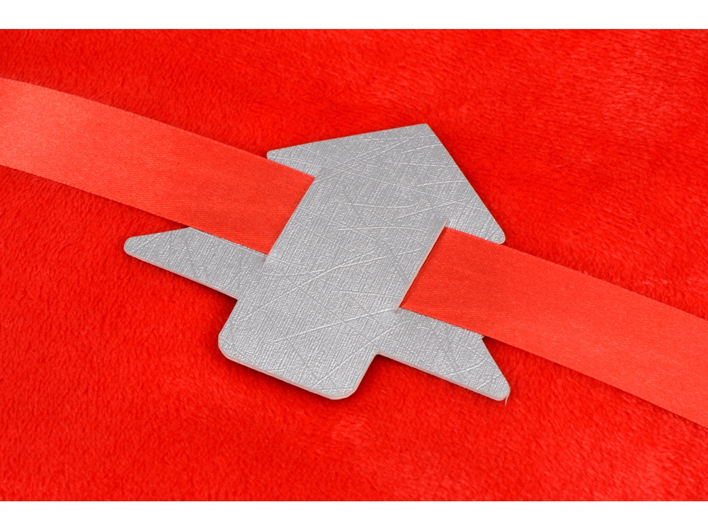 Отличная идея для персонализации новогодних подарков и пледов. С помощью специальных прорезей (2,8 см) по бокам бирка надежно крепится с ленте, которой перевязан плед, и выглядит, как новогодняя игрушка. -