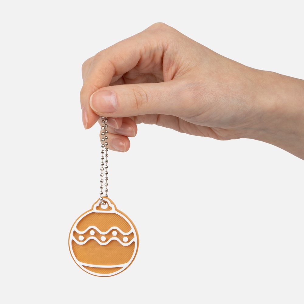 Мини-подвеска на фото изготовлена из PLA-пластика двух цветов: телесный 721С и белый.