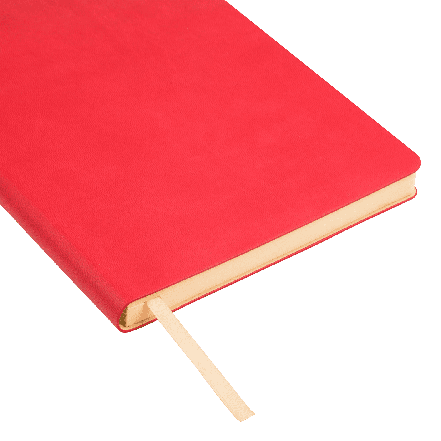 Недатированный ежедневник в интересном цветовом решении: под яркой красной обложкой спрятан теплый кремовый бумажный блок с бежевыми матовыми форзацем, нахзацем и срезом. Обложка гибкая, из искусственной кожи, со скругленными уголками. Гладкий, слегка прорезиненный материал приятен на ощупь. Имеет мелкозернистый рисунок и легкий приглушенный блеск. Обложка не образует заломов, не расслаивается, устойчива к повреждениям. Красный цвет яркий, насыщенный, слегка припудренный. Страницы из гладкого шелковистого офсета со скругленными уголками. Приятны руке, комфортны в работе. Атласное кремовое ляссе с легким отливом выполнено в тон форзаца. Ширина 6 мм. Общая тональность изделия контрастная, динамичная, с цветовыми акцентами.