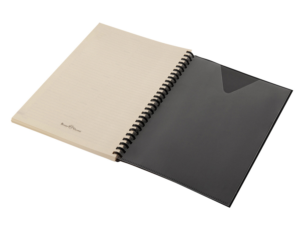 Блок является сменным и вставляется внутрь обложки. С внутренней стороны обложка имеет вырубные отделения для визиток и кредитных карт, а также петлю для ручки на резинке. Для хранения чеков, записок и бумаг внутри расположен прозрачный пластиковый конверт. -