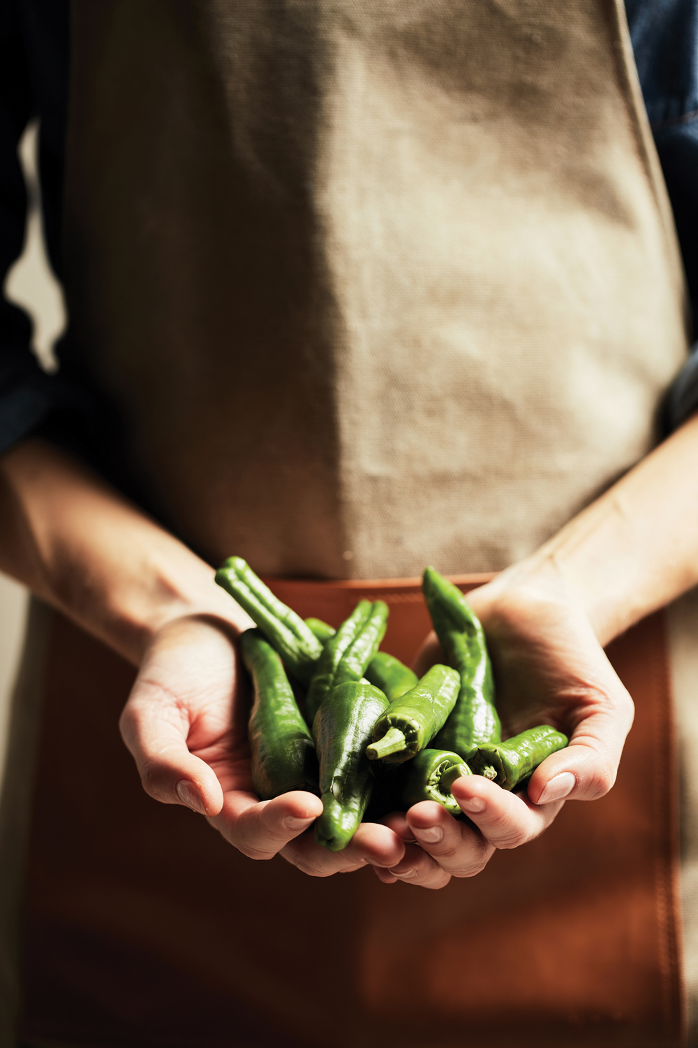 Прочный фартук из вареного канваса плотностью 500 г/м2 декорирован деталями под натуральную кожу. Благодаря текстуре ткани со временем изделие становится только лучше.