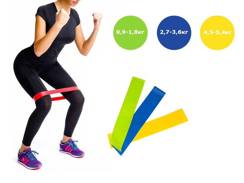 Силовая нагрузка фитнес-резинок отличается в зависимости от цвета: