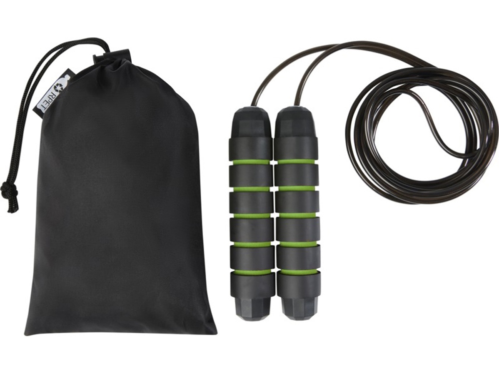 Профессиональная скакалка для взрослых с ручками из мягкого пенопласта эргономичной формы, обеспечивающими надежный и удобный захват во время тренировки. Длина троса составляет 310 см, поэтому эту скакалку могут использовать взрослые ростом до 195 см. Скакалка имеет трос с регулируемой длиной и встроенный высококачественный, вращающийся на 360°, высокоскоростной шарикоподшипник, который обеспечивает плавное и легкое вращение и предотвращает спутывание. Поставляется с чехлом для хранения (21 x 14 см) из переработанного РЕТ-пластика, на котором много места для печати логотипа.