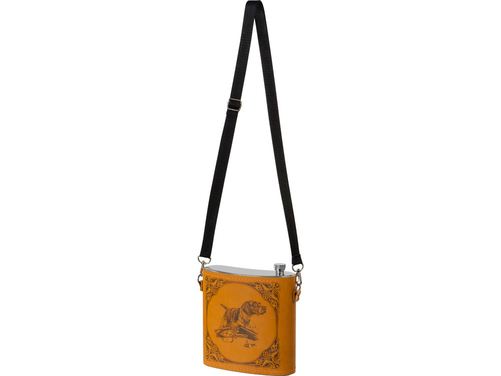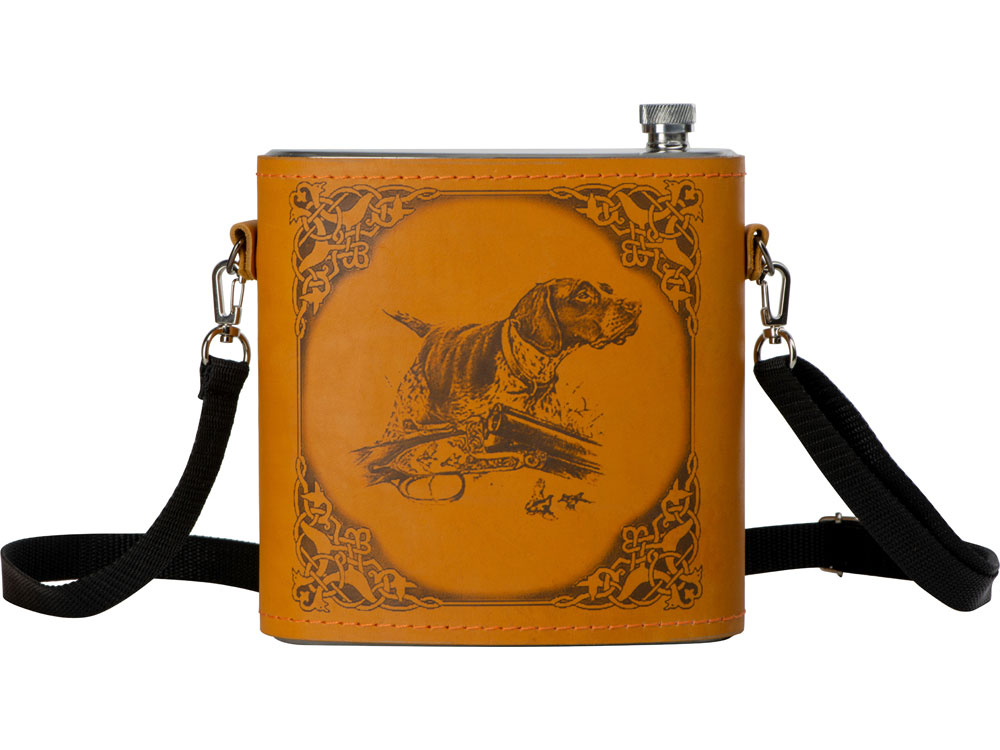 Фляга 1,5л в оплетке из натуральной кожи с нанесением рисунка методом художественного выжигания. -