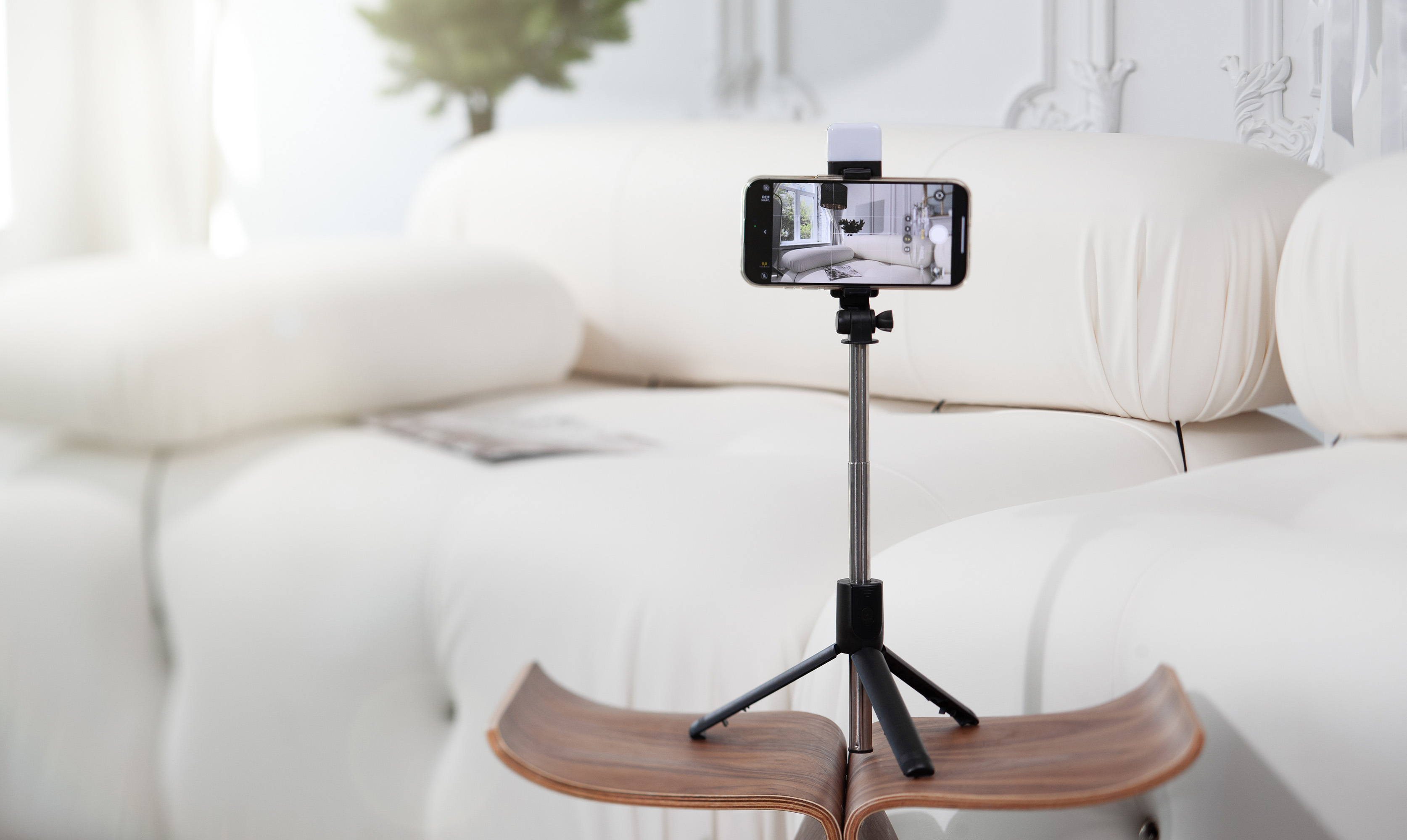 Складной трипод-трансформер с пультом дистанционного управления и съёмной лампой-подсветкой (2 режима яркости, кнопка вкл/выкл находится непосредственно на самой лампе). Пульт соединяется со смартфоном через bluetooth на расстоянии до 10 м. Батарейка для пульта входит в комплект. Длина телескопической ручки - от 18,5 см (в сложенном состоянии) до 69 см (в раздвинутом состоянии). Зажимы для смартфона можно раздвинуть от 6 до 9,5 см, весьма плотно закрепив гаджет.