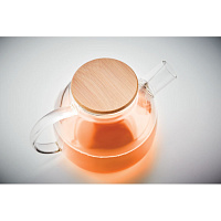 Чайник с кружкой на подставке "Мила" без упаковки, 21,5х24х12см,500мл и 300мл, фарфор, бамбук