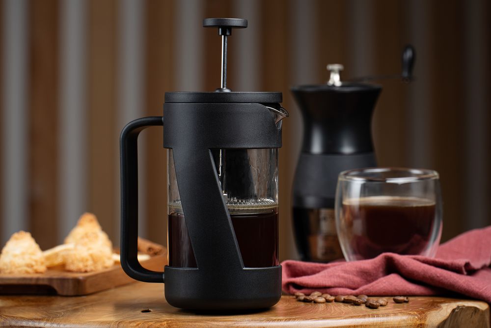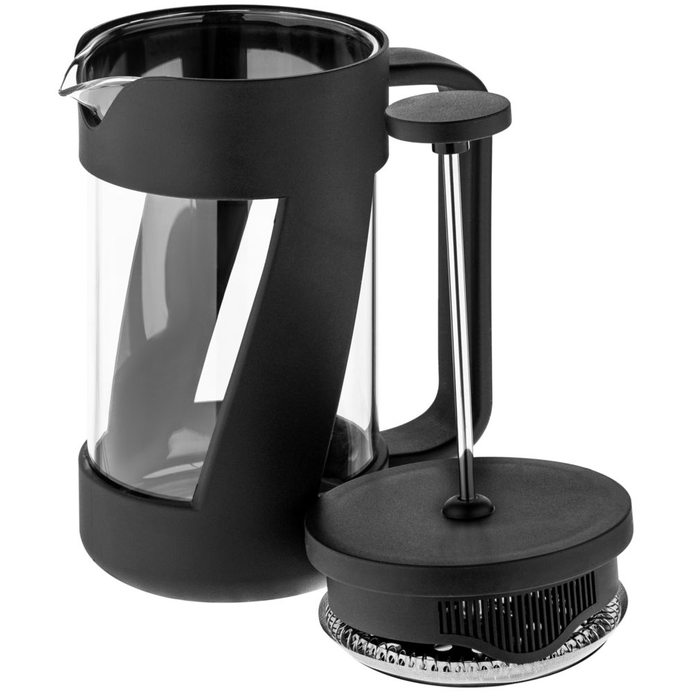 Френч-пресс подходит для заваривания как чая, так и кофе. Пластиковый каркас защищает колбу от повреждений и не дает обжечься. Колба из корпуса френч-пресса не вынимается. Емкость 600 мл.